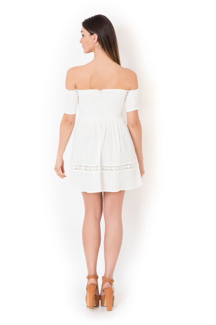 Questo elegante abito bianco presenta una fascia aderente sul corpetto che garantisce una vestibilità comoda e valorizzante. Il suo design semplice ma raffinato lo rende una scelta versatile per diverse occasioni, unendo stile e praticità. Perfetto per chi cerca comfort e raffinatezza nel proprio guardaroba.