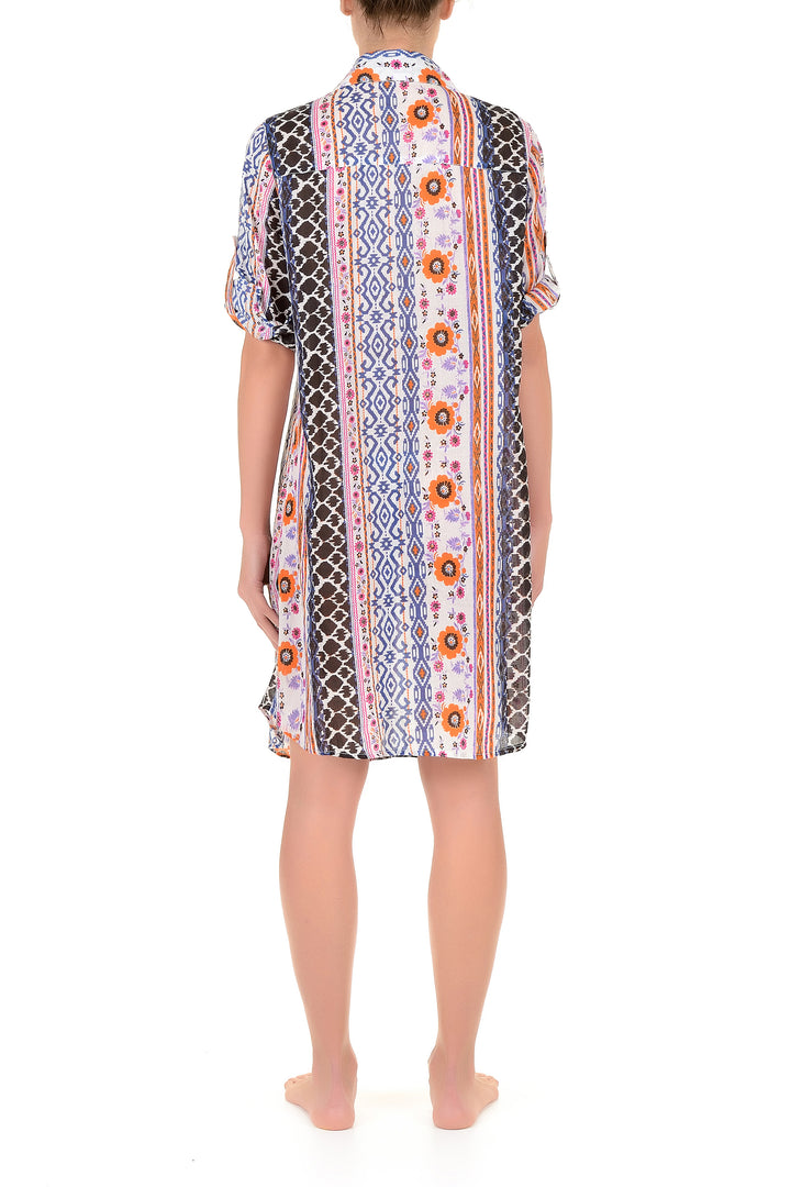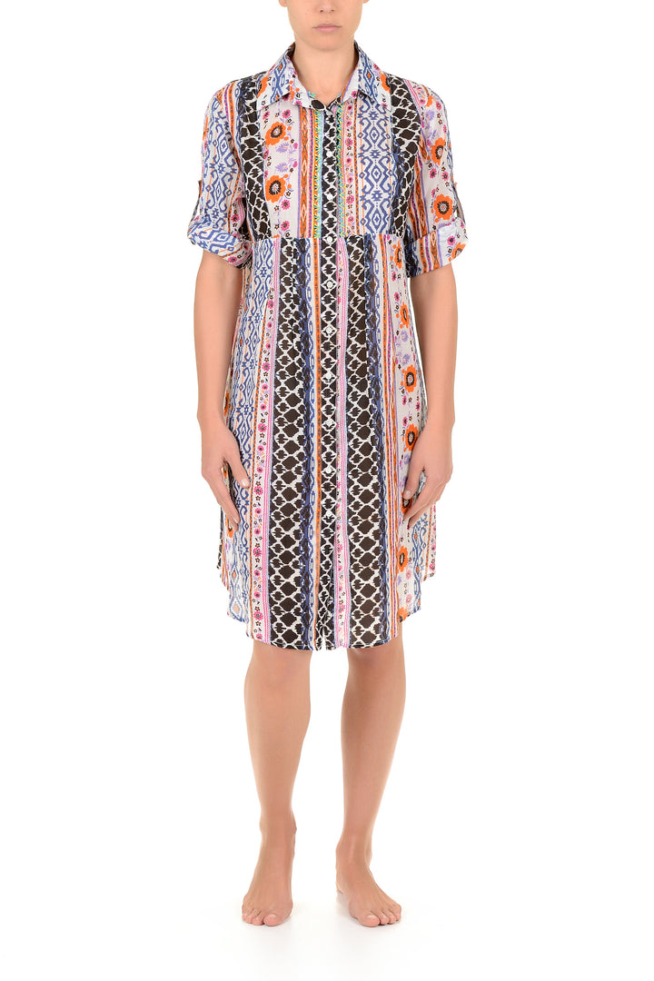 This shirt dress features a classic front button closure and is made of pure cotton. The natural material ensures breathability and comfort, making it the ideal choice for everyday elegance. Designed to be versatile, it combines effortless style and practicality.