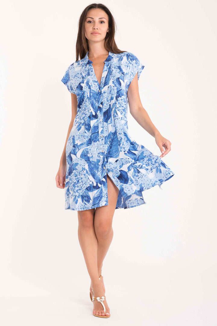 The shirt dress in linen blend combines elegance and practicality. The pattern in blue tones gives a sophisticated and versatile character, while the side slits ensure freedom of movement without stylistic compromises. The linen blend fabric guarantees breathability and comfort throughout the day, maintaining a refined silhouette. An essential garment for those seeking construction quality and timeless design.