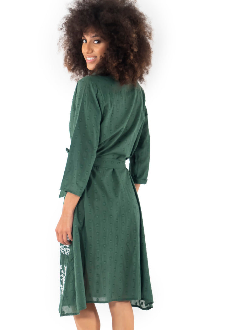 Made of pure cotton, this long shirt dress features an elegant collar and buttons at the front. Thanks to the adjustable waist belt and ¾ sleeves, it offers maximum comfort. With a beautiful floral embroidery at the bottom, this dress is perfect for a refined and feminine look.