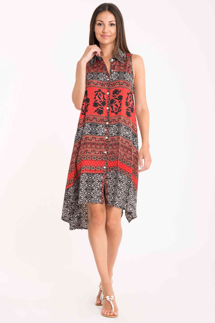 This sleeveless Ana shirt dress with front buttoning is perfect for those seeking versatility and refinement. The sleeveless design allows superior freedom of movement, while the front buttons ensure practicality and a timeless aesthetic. An essential garment that easily integrates into any wardrobe, combinable with accessories to create sophisticated and personal looks.