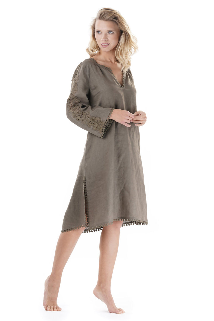 LINEN DRESS WITH EMBROIDERY