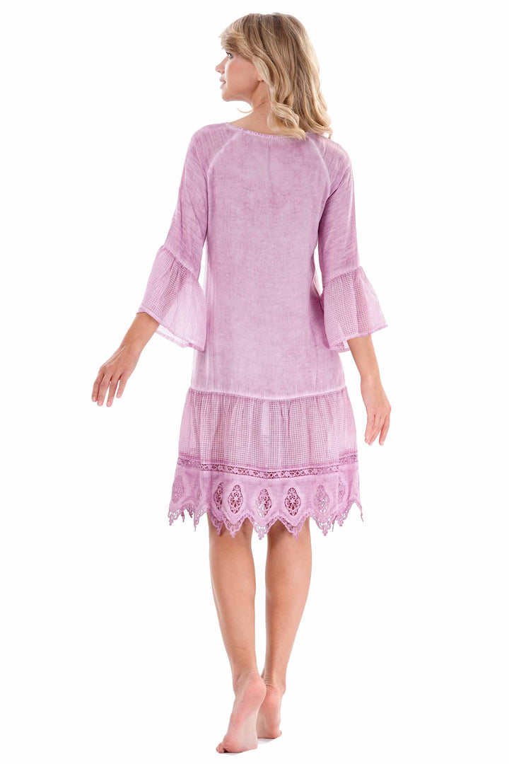 This elegant dress features delicate lace details and a distinctive tassel tie, adding a refined touch to the design. The wide sleeves ensure both comfort and a sophisticated silhouette, making it a versatile option for stylish occasions. Carefully crafted, this piece balances classic charm with a touch of modernity.
