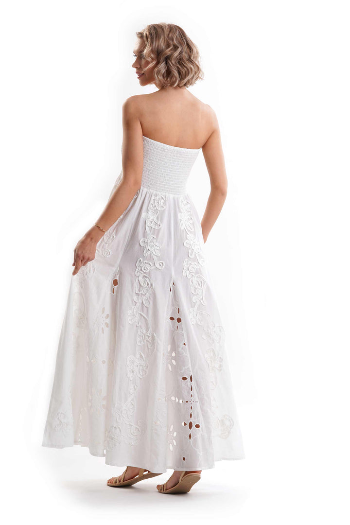 LONG BANDEAU DRESS IN LACE SANGALLO