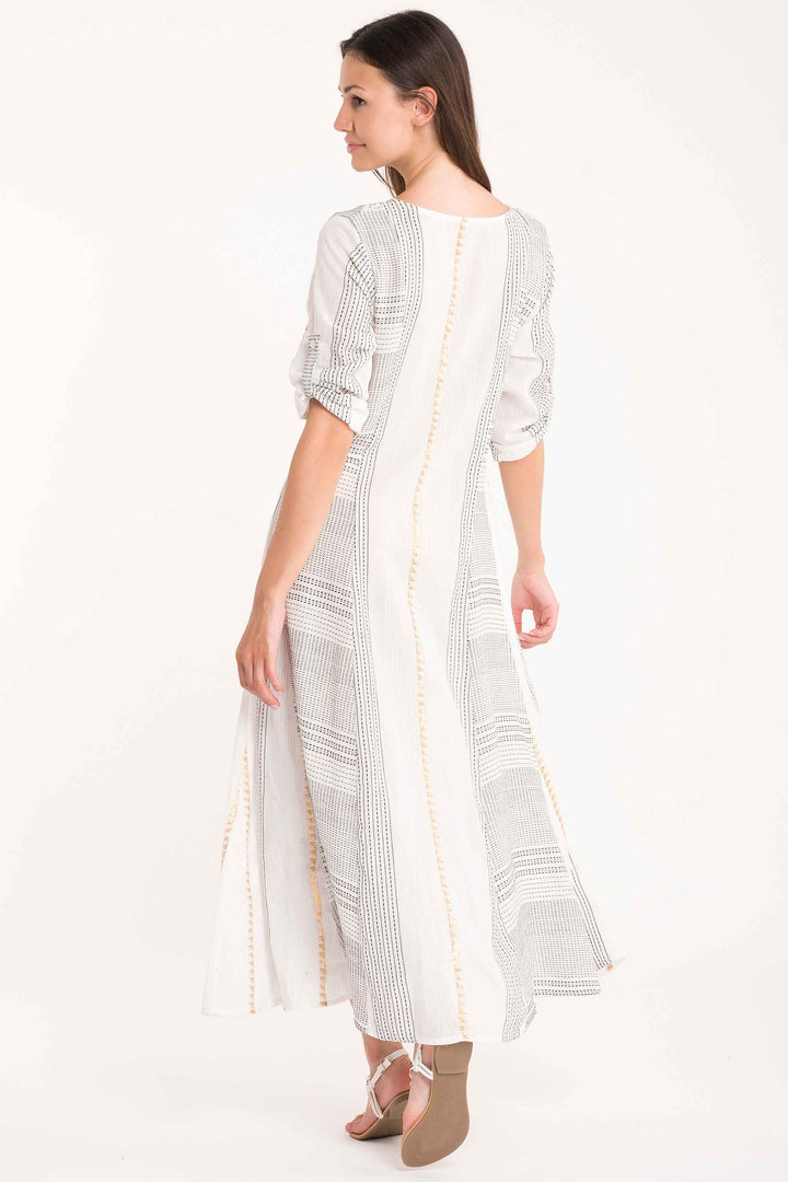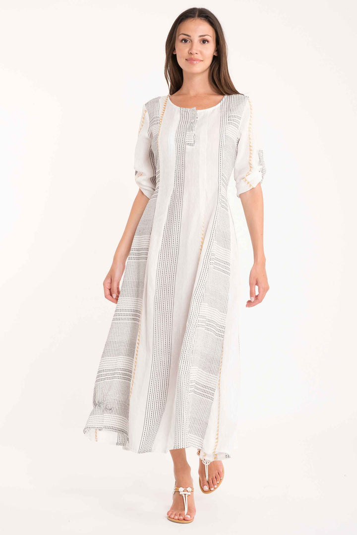 The long dress Amara made of pure cotton fits perfectly for various occasions, from a walk on the beach to informal events. The pure cotton ensures durability over time and ease of maintenance, maintaining shape and color even after numerous washes. A versatile and sophisticated garment for your summer wardrobe.