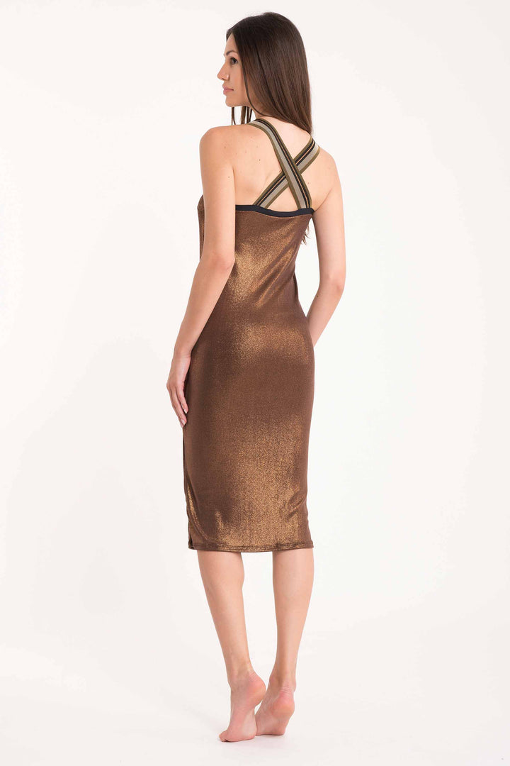 This long dress features a classic sheath silhouette, expertly designed to offer an elegant and slender fit. Ideal for occasions that require a refined style, its timeless shape enhances the natural figure with precision and sophistication.