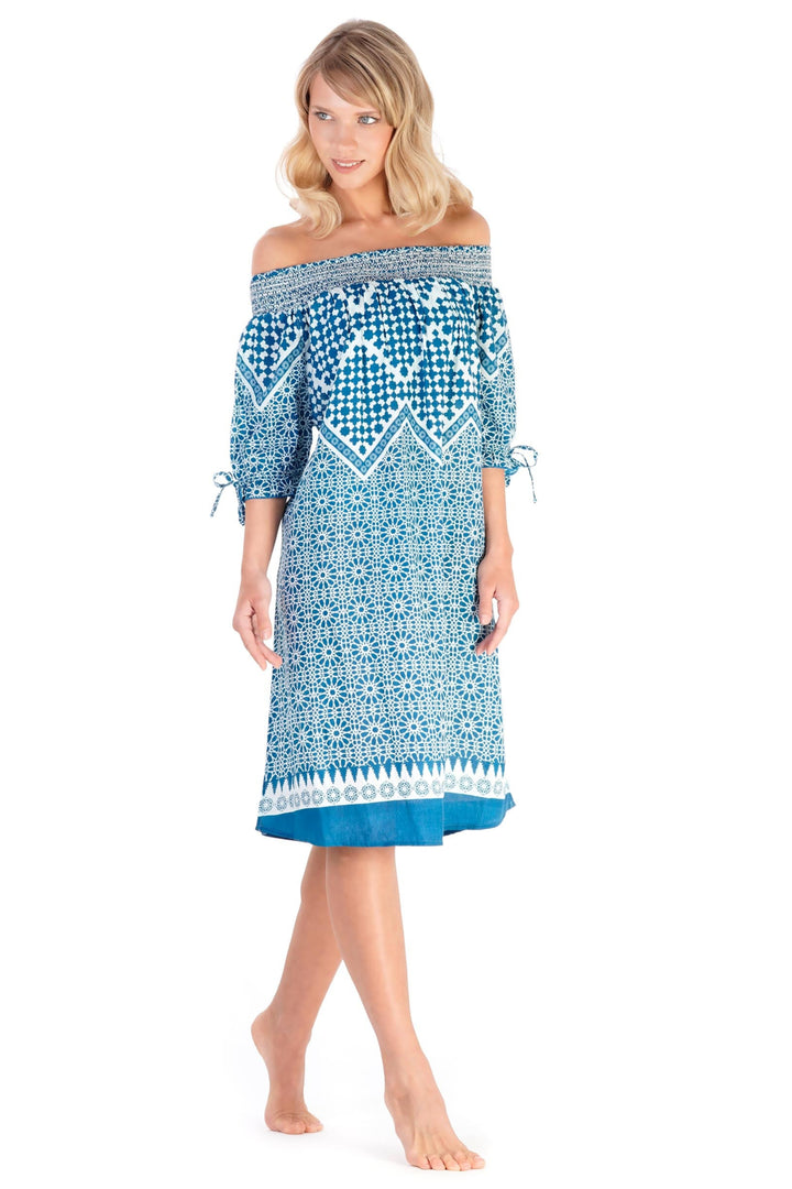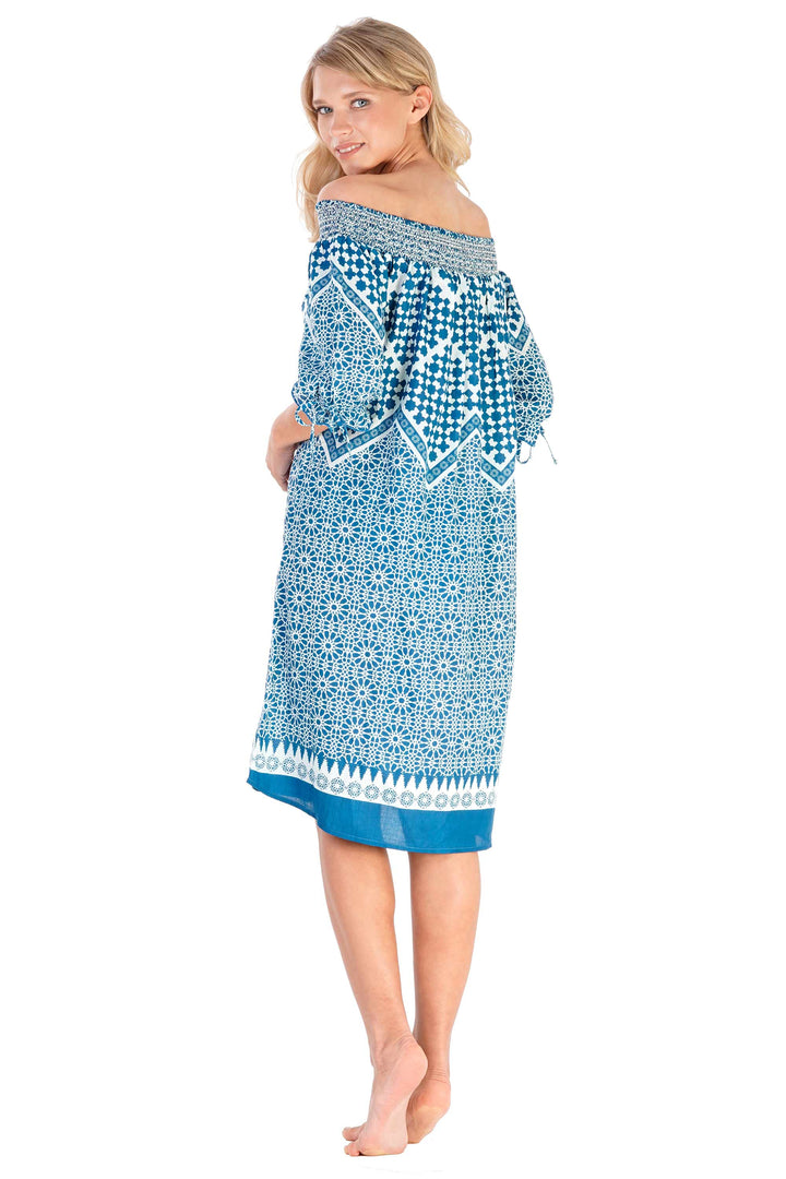 This elegant dress features a refined boat neckline that enhances the décolleté. The adjustable sleeves with ties allow for a personalized fit, combining style and comfort. Perfect for those who want a tailored yet elegant look.