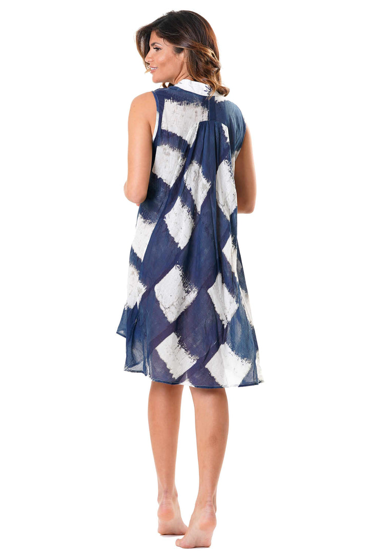 This sleeveless dress in pure cotton combines comfort and style thanks to the natural fabric, ideal for hot days. The distinctive pattern adds a touch of personality, while the sleeveless design ensures freedom of movement and freshness. Perfect for those looking for a versatile and refined garment.