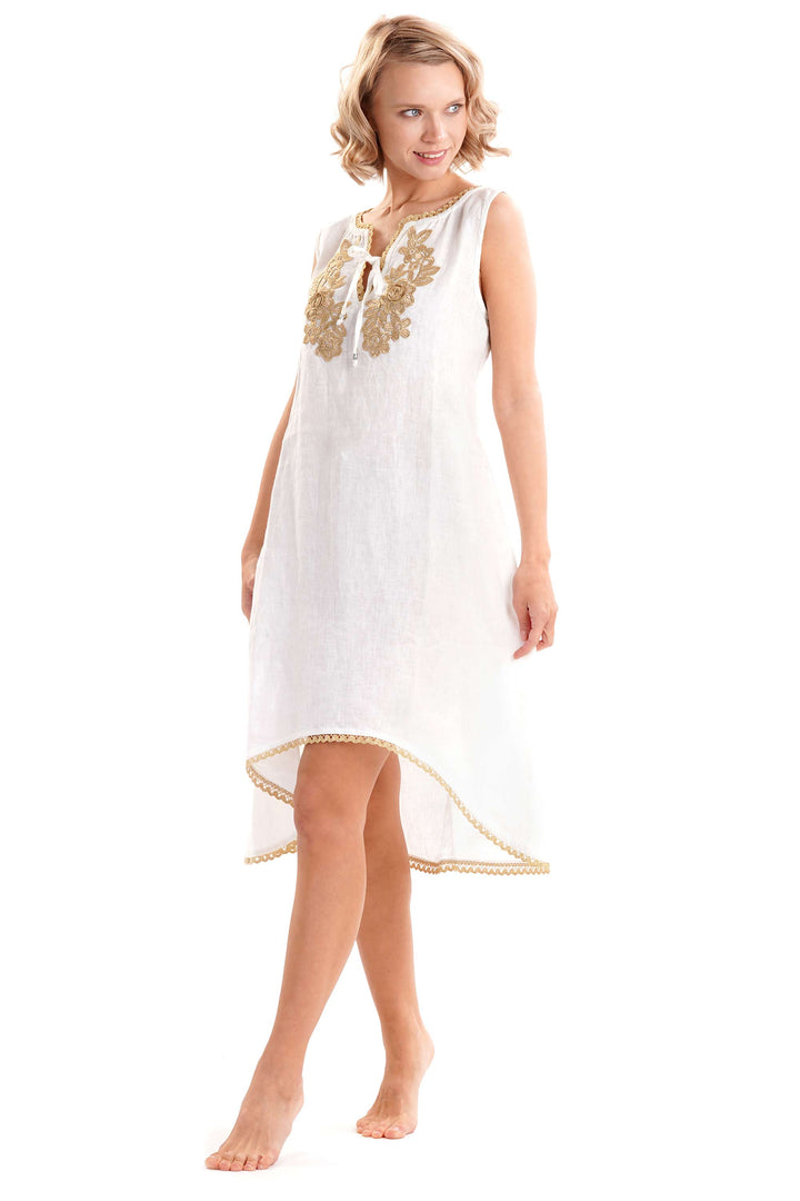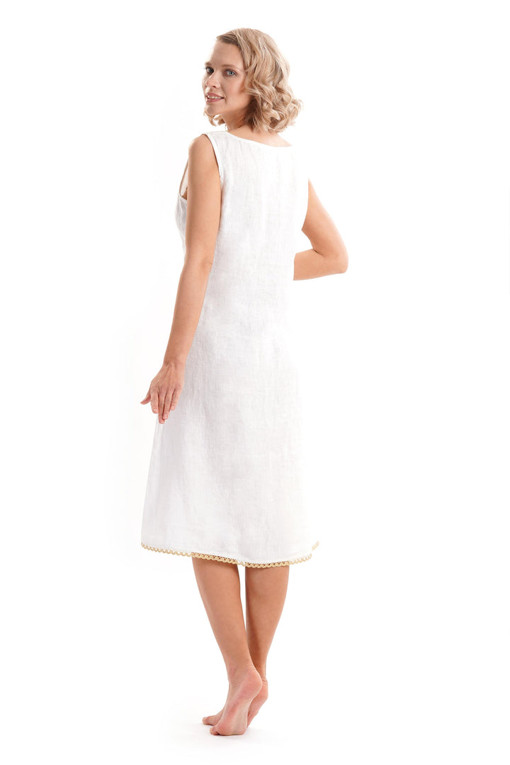 This sleeveless dress made of pure linen is an ideal choice for the warm season. The fabric guarantees exceptional breathability and comfort during the hottest days. The sleeveless silhouette offers freedom of movement and an elegant, minimalist aesthetic. Linen, known for its durability and ability to regulate body temperature, maintains its structure and beauty over time. A versatile garment that perfectly adapts to coastal and urban lifestyles.