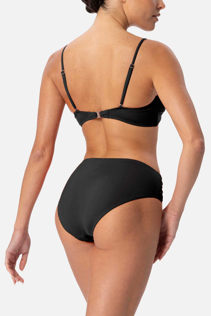 The Yasmin bikini features a bandeau design with underwire and cups, for a sophisticated and fashionable look. The straps are adjustable and removable to suit every need. The fabric is soft and durable, ensuring comfort and longevity. Add a touch of elegance to your summer outfit with this bikini.