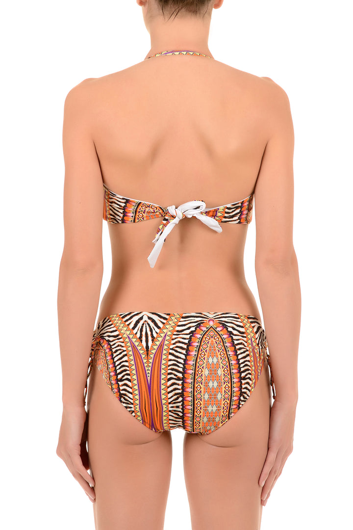 Discover the halter neck bikini, featuring a sophisticated animal print that adds a touch of boldness and style. The top ties gently at the neck for a personalized and comfortable fit, while the matching bottoms are enhanced with side bows, adding femininity and elegant details. Perfect for those looking for a swimsuit that combines refined design and comfort on beach days.