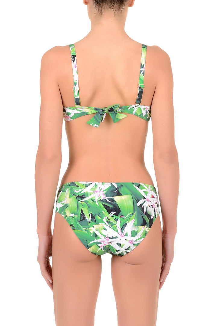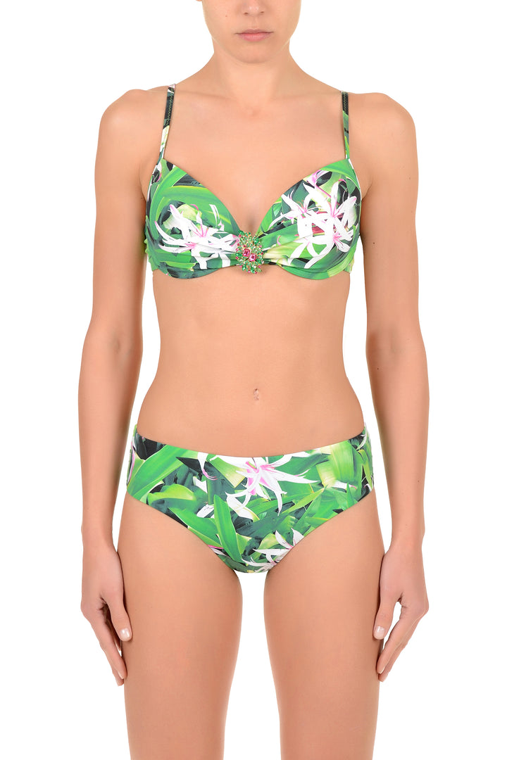This underwire bikini offers optimal support and a perfect shape thanks to the adjustable straps that ensure a customized fit. The matching slip completes the set, enhancing the silhouette with an elegant and modern pattern, ideal for those seeking comfort without sacrificing style.