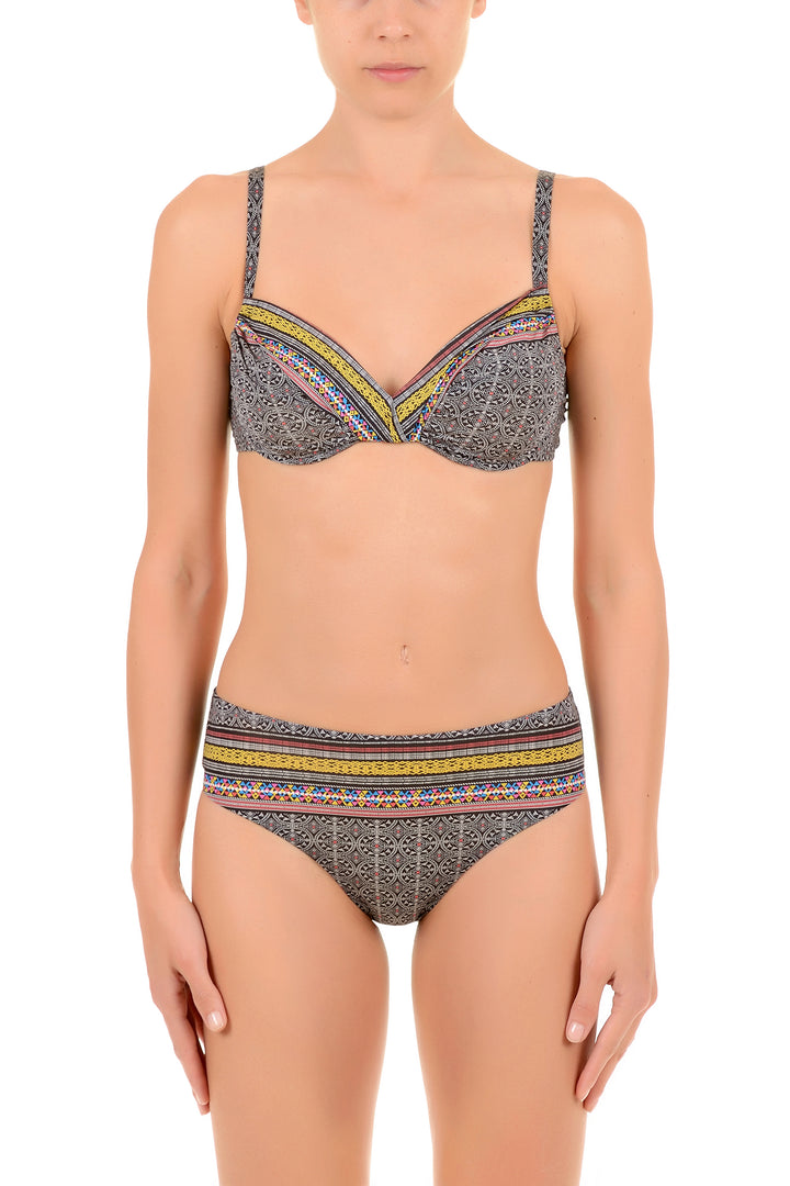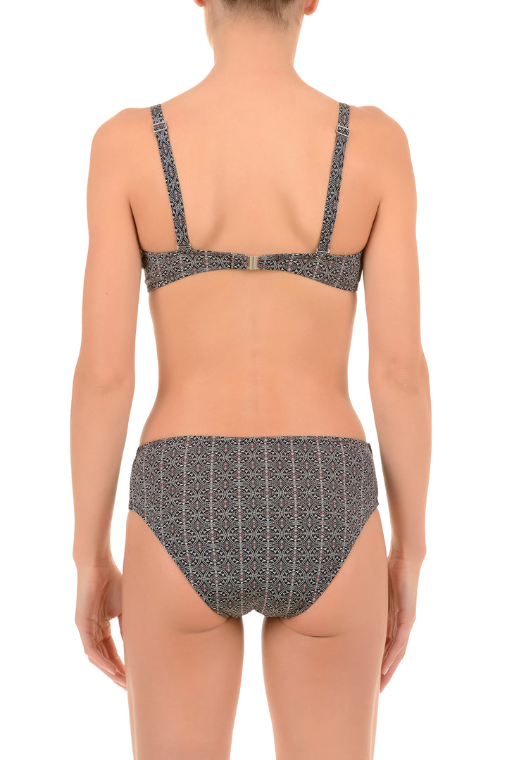 Questo bikini con slip classico presenta spalline regolabili per una vestibilità personalizzata e un motivo decorativo alla moda. Perfetto connubio tra comfort ed eleganza senza tempo, offre un sostegno affidabile arricchendo la tua collezione beachwear con una sobria raffinatezza.