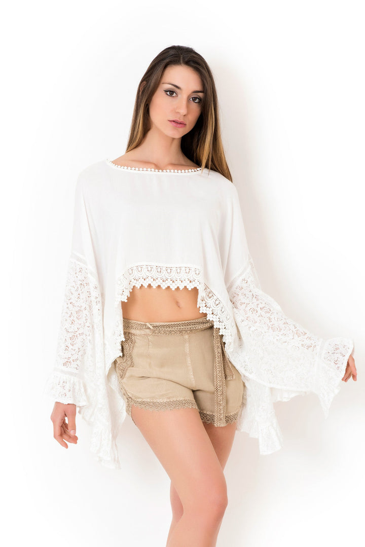 BLOUSE WITH BATWING SLEEVES IN LACE