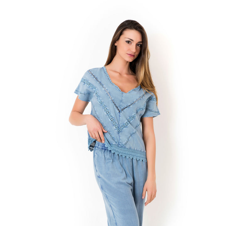 BLOUSE WITH V-NECK E EMBROIDERIES