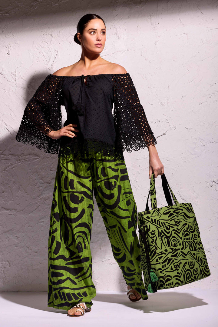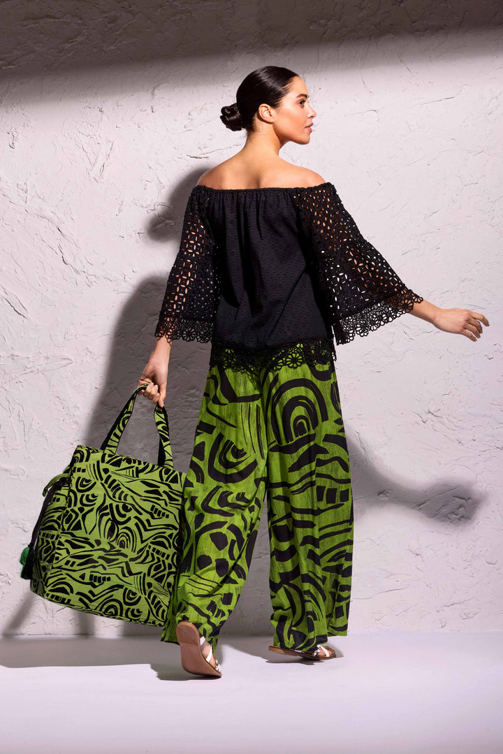 The Flor blouse is the perfect choice for those looking for a versatile and sophisticated piece. Made from lightweight and breathable cotton, it features an elegant boat neckline and a refined lace decoration. Thanks to its loose fit, it can be worn stylishly for both special occasions and casual looks.