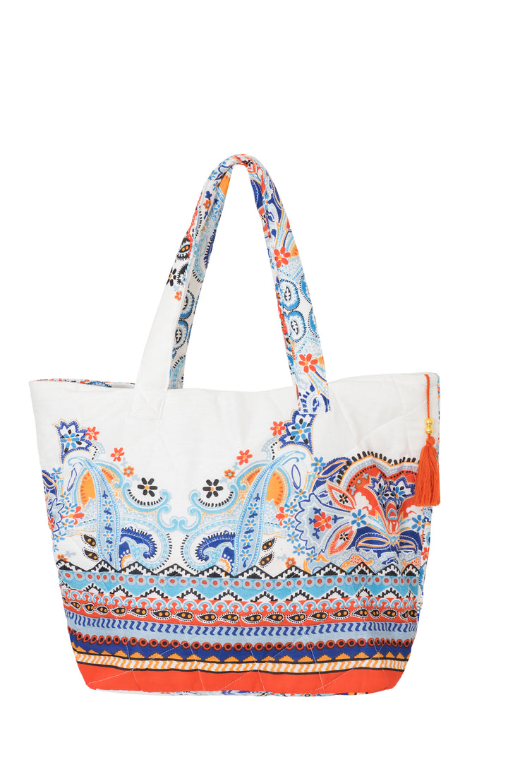 This beach bag is made of durable cotton, combining practicality with a vibrant ethnic pattern that adds a distinctive touch to your summer look. The spacious design allows you to comfortably carry all your essentials, making it the ideal companion for trips to the sea.