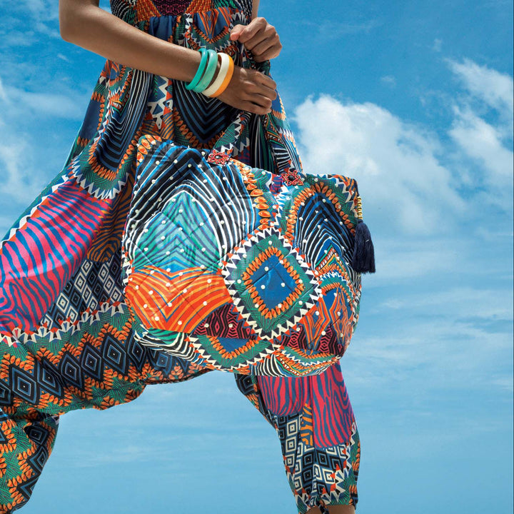 This bag with double handles is ideal for those seeking practicality without stylistic compromises. The ethnic pattern that characterizes the design gives a distinctive and versatile touch, suitable for multiple occasions. Perfect for those who appreciate artisanal details and a sturdy construction, this bag combines functionality and contemporary aesthetics with refined cultural influences.