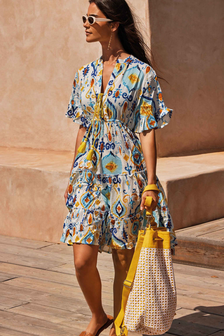 The Vietri bag showcases expert craftsmanship with its finely woven design, made from high-quality cotton fabric. Its sturdy yet lightweight structure makes it an ideal accessory for both everyday use and special occasions, combining style and practicality.