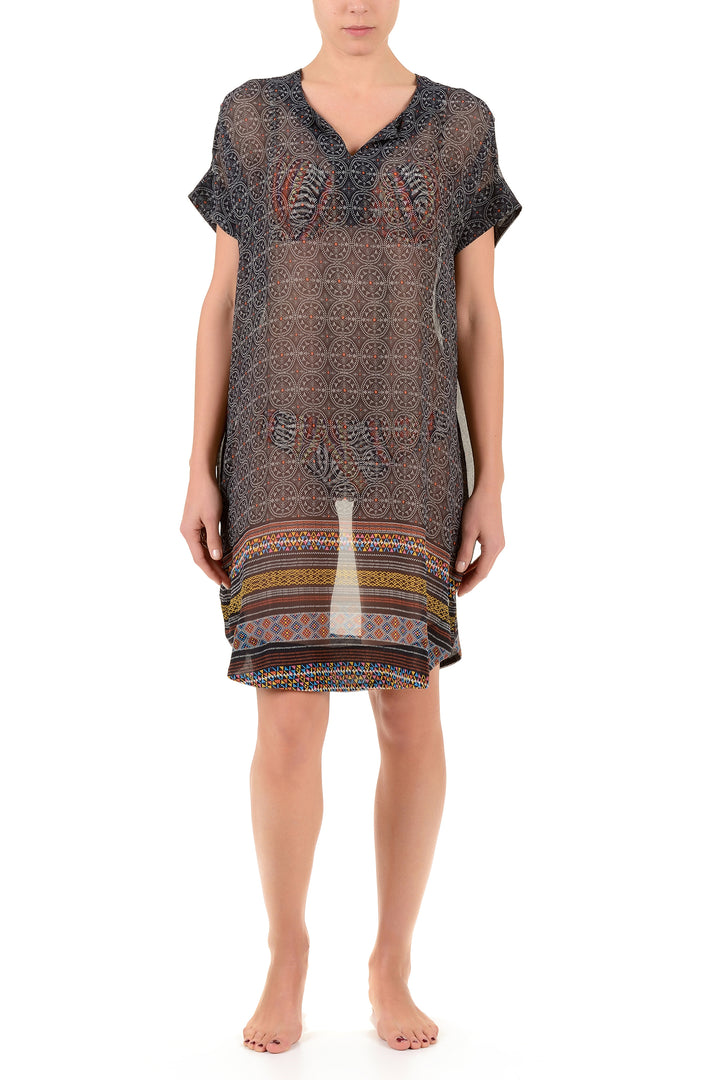 This lively caftan features a bold pattern motif, offering both comfort and a sophisticated style. Made from lightweight fabric, it ensures breathability, making it ideal for warm weather or as a beachwear piece.
