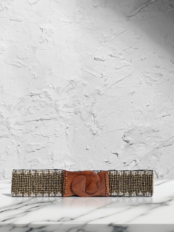 This Lilly belt is the perfect accessory to complete your summer looks with a unique style. With its handcrafted beads and chic multicolored design, it will add a boho chic touch to your outfit. The dimensions of 79x6 cm and the wooden closure make it perfect for casual or elegant looks.