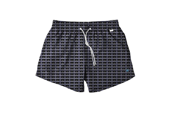 Essential boxer swimsuit with a modern and proportioned silhouette. The optical pattern creates a sophisticated visual effect, while the elastic waistband ensures adherence and freedom of movement. Equipped with a back pocket with flap and an embroidered crab as a brand recognition element. Short leg and regular fit make it accessible to different body types, maintaining the balance between functionality and refinement typical of the beach collection.
