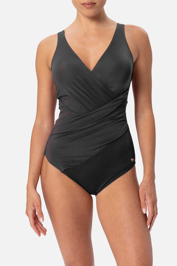 The Mykonos one-piece swimsuit offers comfort and style thanks to its fit that enhances every figure. Made with shaping stretch fabric, it features padded cups, straps, and a V-neckline. Perfect for those looking for a flawless look at the beach or by the pool.