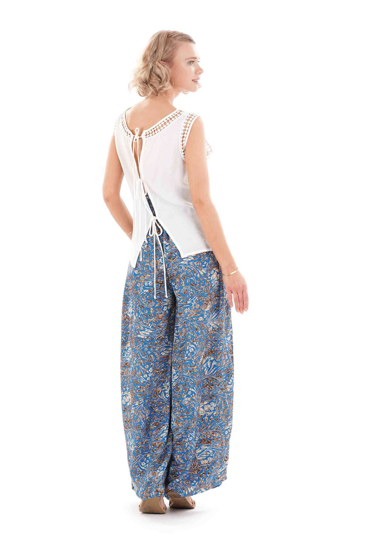 Wide palazzo model trousers, characterized by a distinctive pattern. Perfect to add style and movement to any look