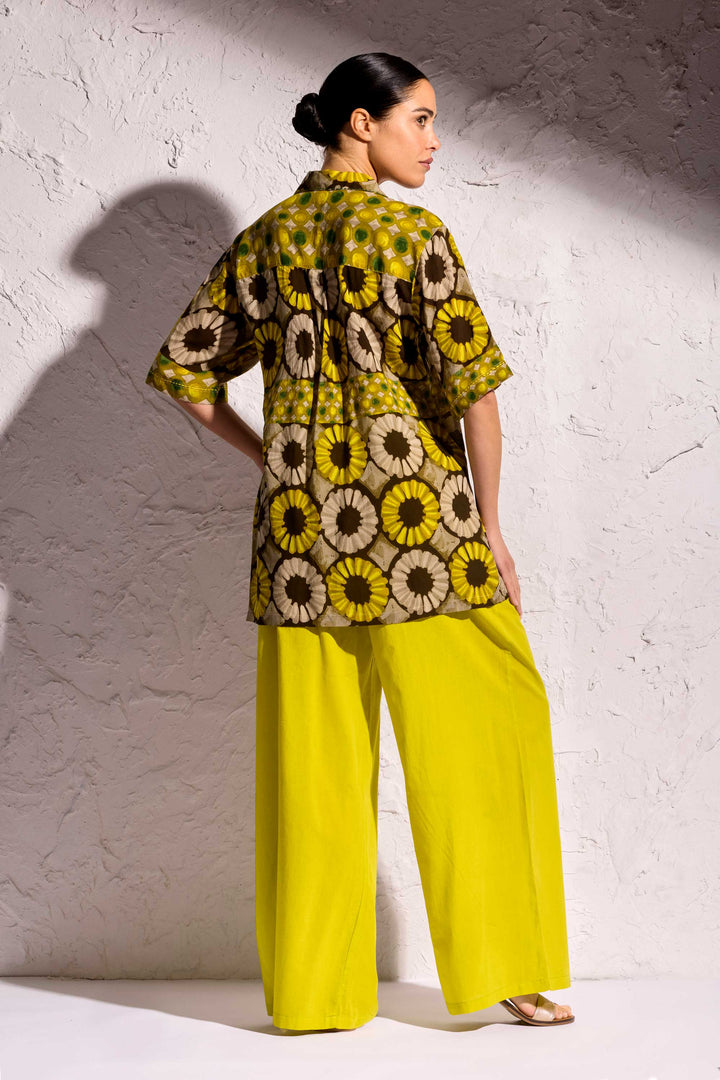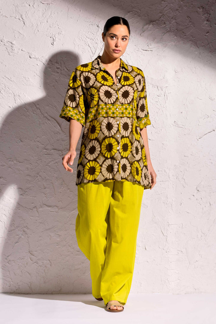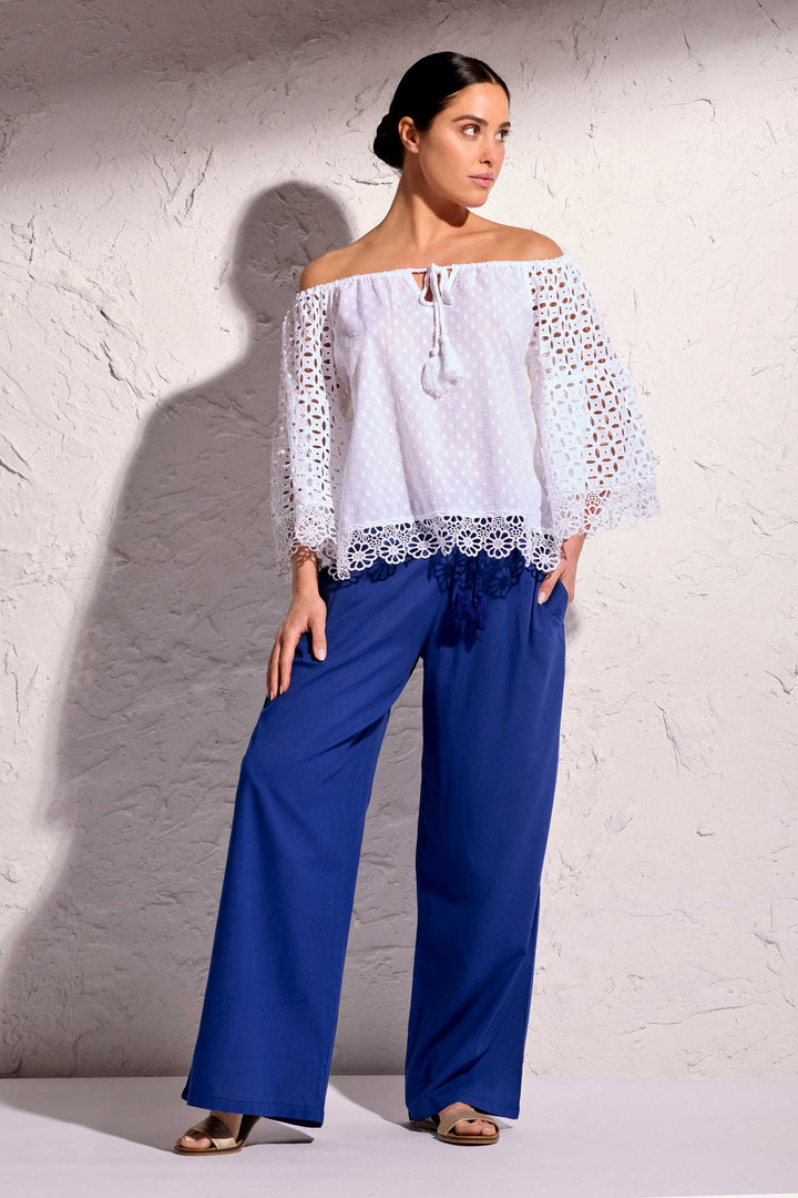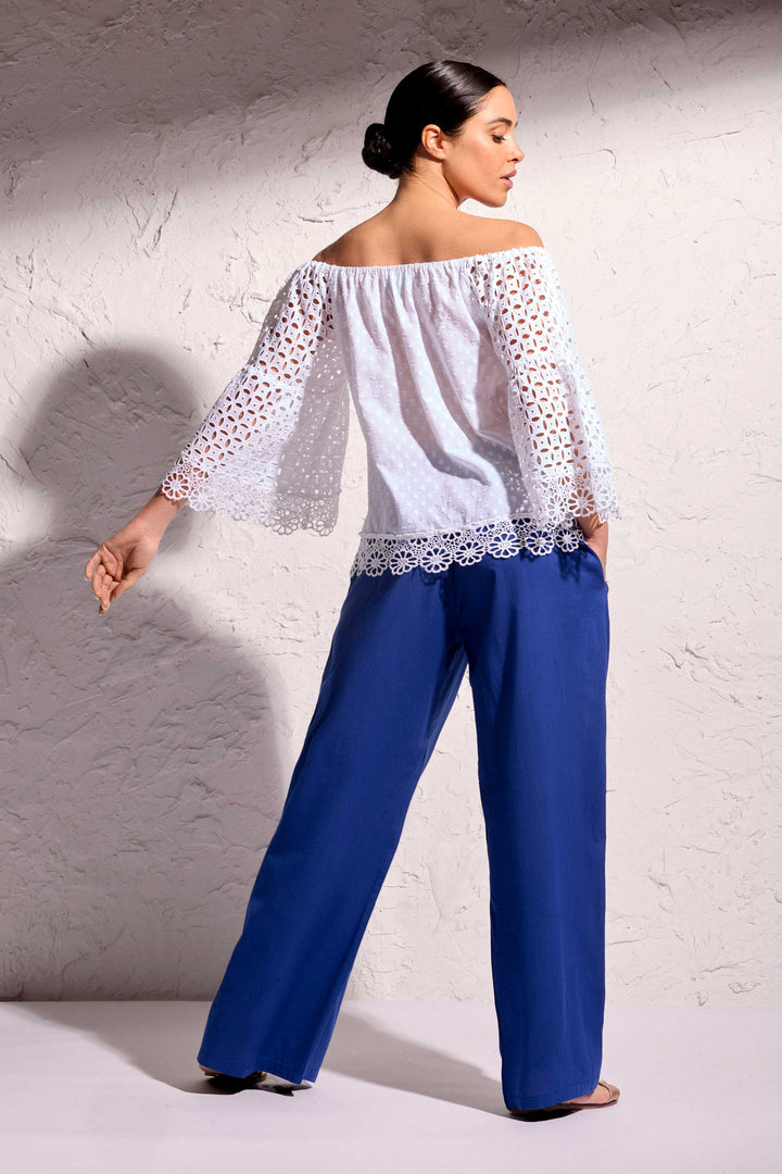 Elevate your style with the Perla wide-leg cotton pants. Perfect for a versatile summer look, they offer a comfortable and breathable fit, thanks to the cool fabric and side pockets. The waist waistband with drawstrings adds a sophisticated and modern touch to this high-quality piece.