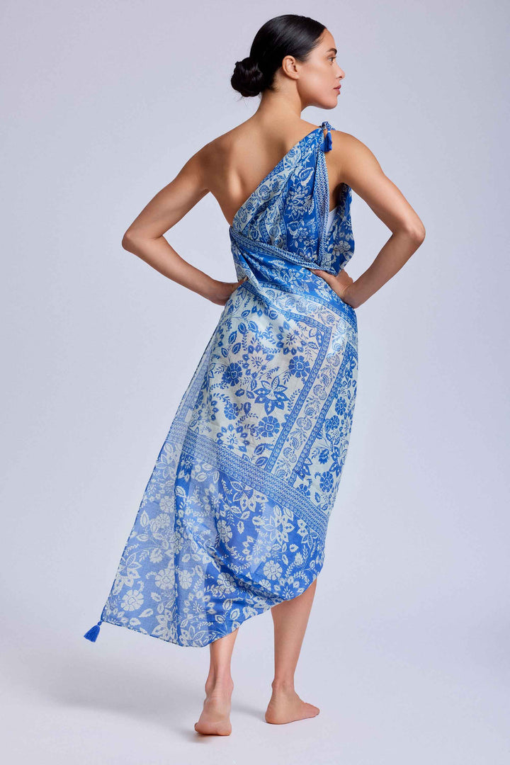 Questo pareo foulard, realizzato in puro cotone, offre una texture morbida e traspirante, ideale per la stagione estiva. I toni del blu donano un'eleganza discreta e una versatilità adatta ad abbinamenti differenti. Questo capo unisce leggerezza e comfort, perfetto sia come copricostume che come accessorio di stile raffinato.