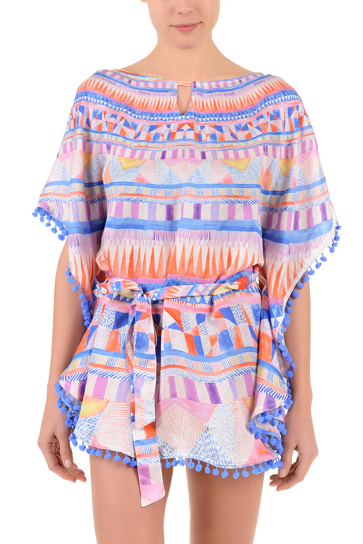 Questo elegante poncho presenta una cintura in vita che definisce la silhouette con facilità. Realizzato con un motivo distintivo, aggiunge un tocco sofisticato a qualsiasi outfit, offrendo al contempo una copertura confortevole.