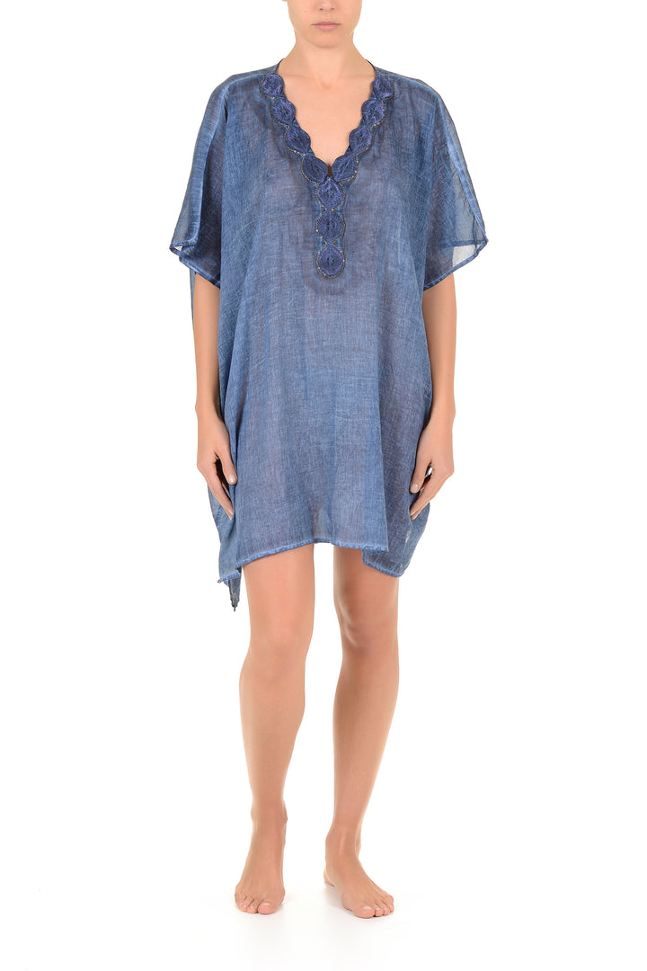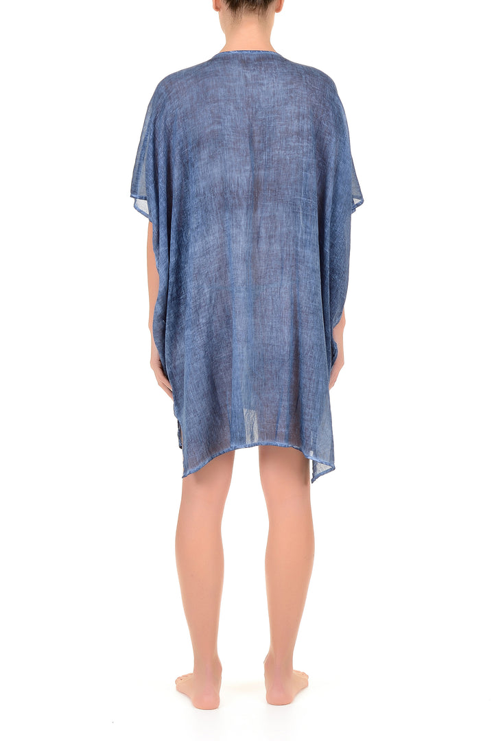 The Micol poncho in pure cotton with a V-neck is ideal for those seeking comfort and versatility. The fabric ensures breathability and softness on the skin, while the wide neckline creates a slimming effect. An essential garment that easily adapts to different settings, from the beach to the city.