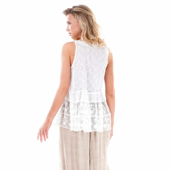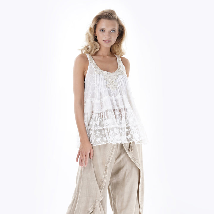This sleeveless top combines elegance and comfort with refined lace details that enhance every outfit. Ideal for those looking for a versatile and classy garment, perfect to wear in both casual and more formal settings. Carefully made to ensure an optimal fit and a sophisticated style.